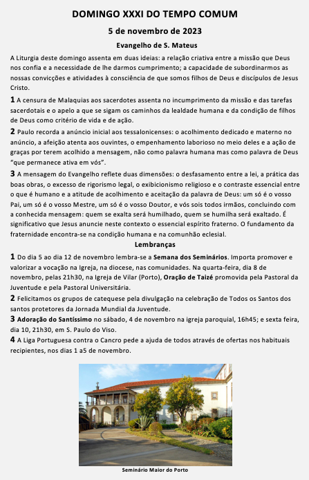 DOMINGO XXXI DO TEMPO COMUM