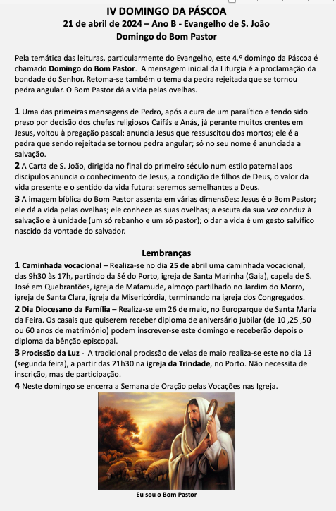 IV DOMINGO DA PÁSCOA - DOMINGO DO BOM PASTOR