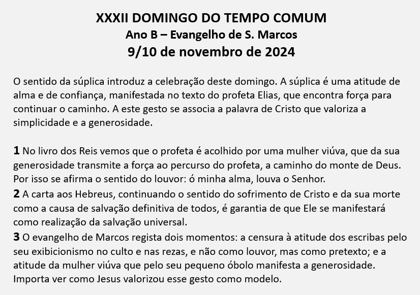 MENSAGEM DO XXXII DOMINGO DO TEMPO COMUM - 10 DE NOVEMBRO
