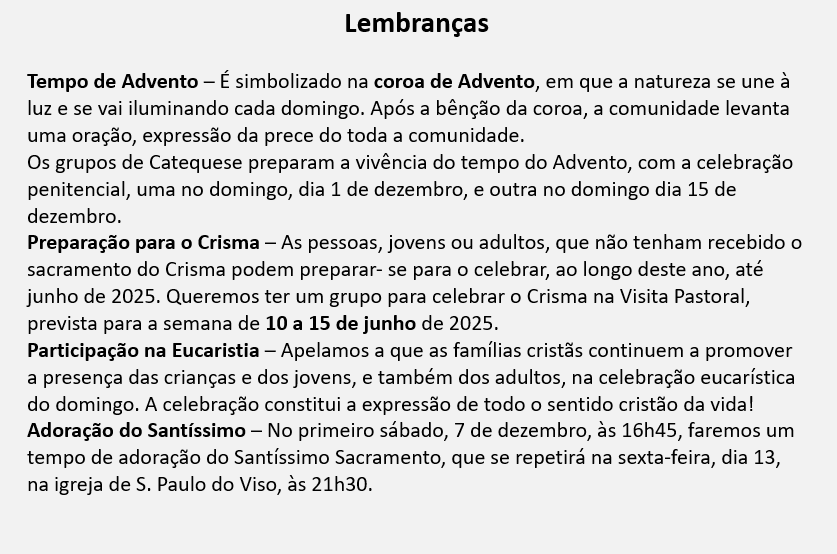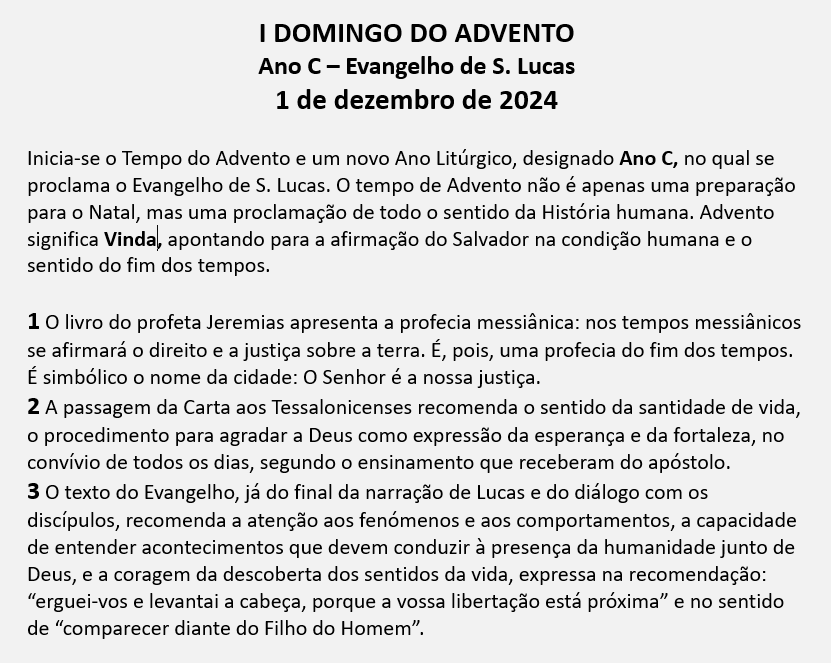 MENSAGEM DO I DOMINGO DO AVENTO - 1 DE DEZEMBRO