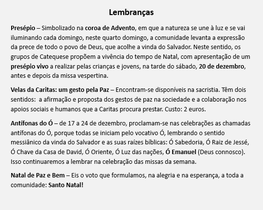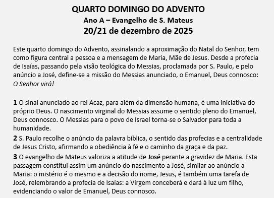 MENSAGEM DO QUARTO DOMINGO DO ADVENTO - 21 DE DEZEMBRO DE 2025
