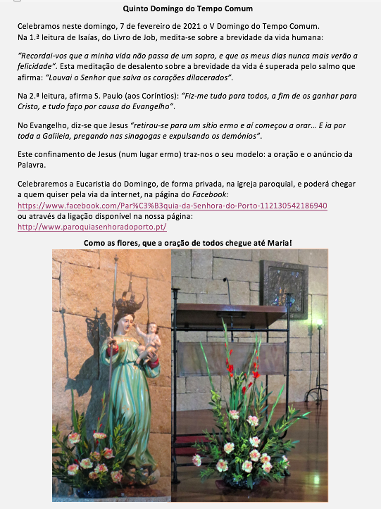 VIDEO DA CELEBRAÇÃO DO V DOMINGO DO TEMPO COMUM