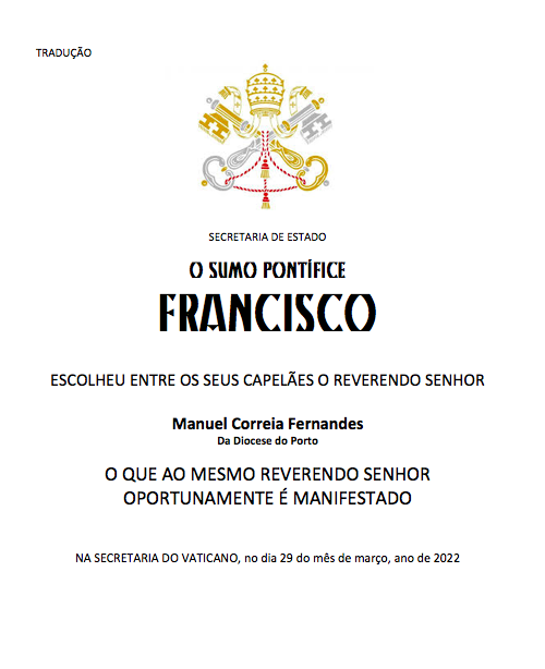 MONSENHOR MANUEL CORREIA FERNANDES, "CAPELÃO DE SUA SANTIDADE"