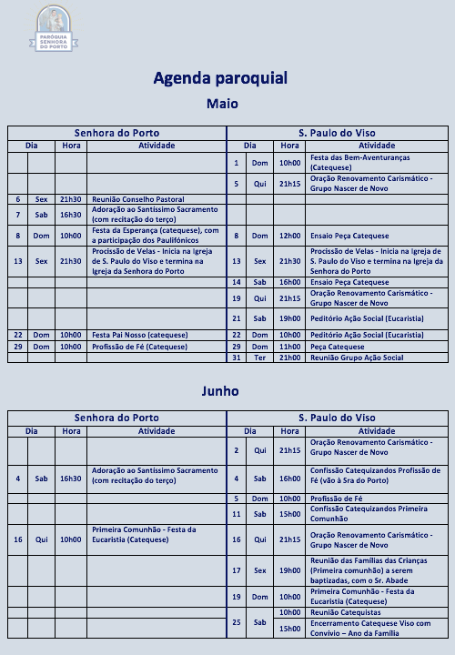 AGENDA PAROQUIAL - MAIO | JUNHO