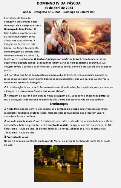 DOMINGO IV DA PÁSCOA - DOMINGO DO BOM PASTOR