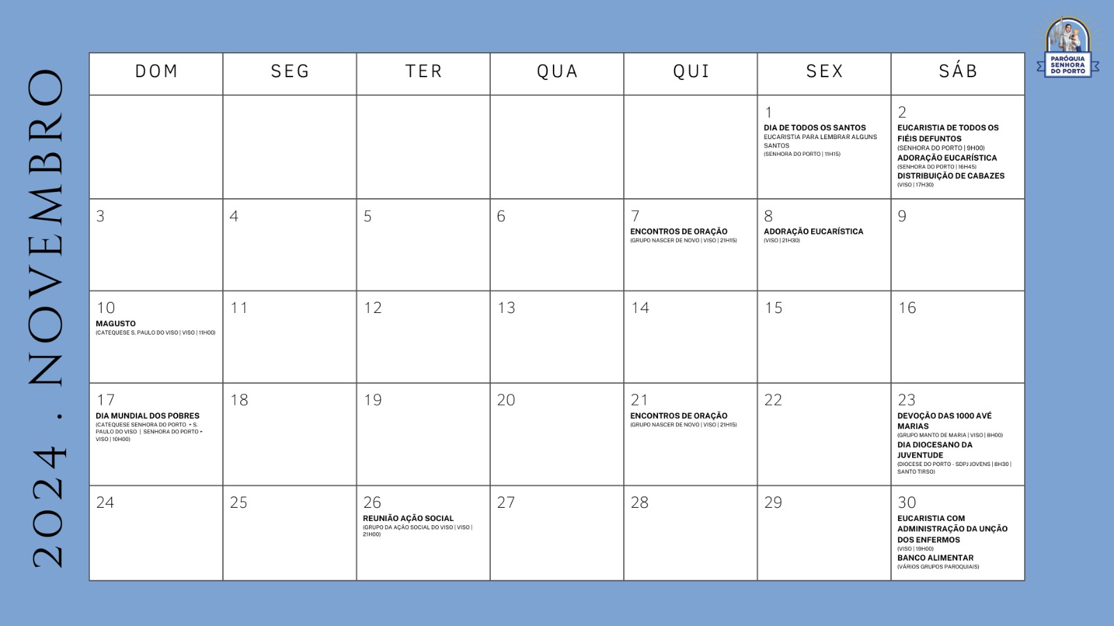 CALENDÁRIO PAROQUIAL PARA O MÊS DE NOVEMBRO