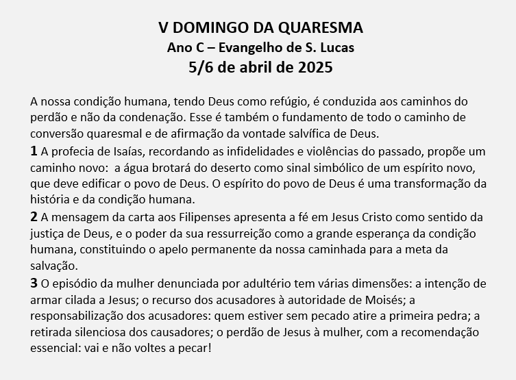 MENSAGEM DO V DOMINGO DA QUARESMA - 6 DE ABRIL DE 2025