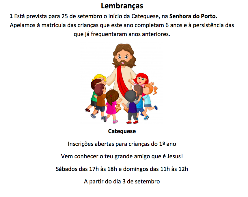 INSCRIÇÕES NA CATEQUESE: SRA DO PORTO E S. PAULO DO VISO