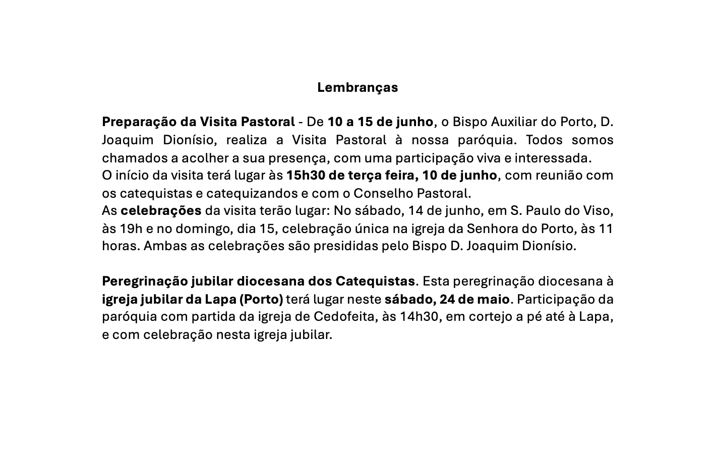 MENSAGEM DO VI DOMINGO DA PÁSCOA - 25 DE MAIO DE 2025
