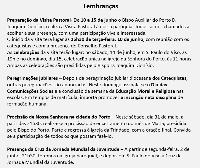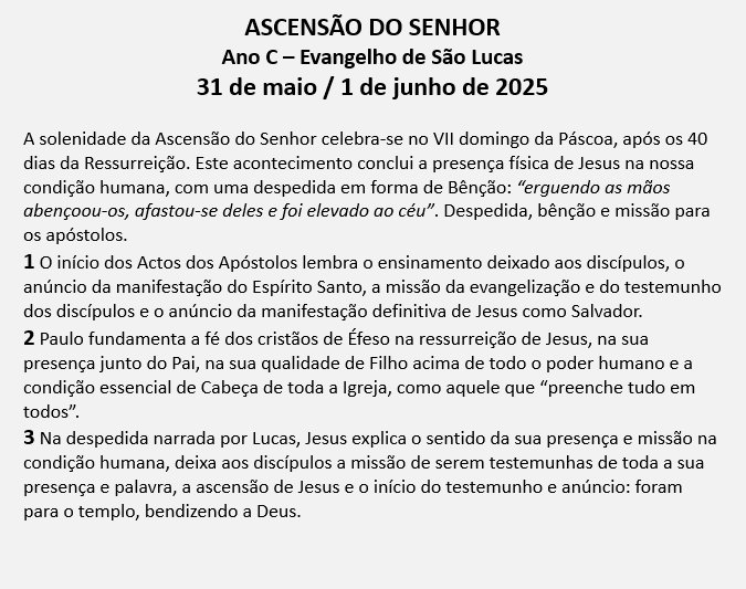 MENSAGEM DA SOLENIDADE DA ASCENSÃO DO SENHOR - 1 DE JUNHO DE 2025