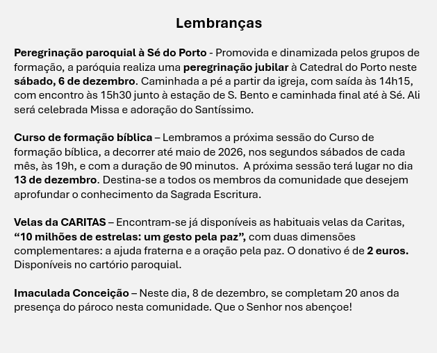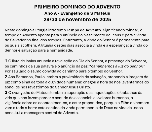 MENSAGEM DO SEGUNDO DOMINGO DO ADVENTO - 7 DE DEZEMBRO DE 2025