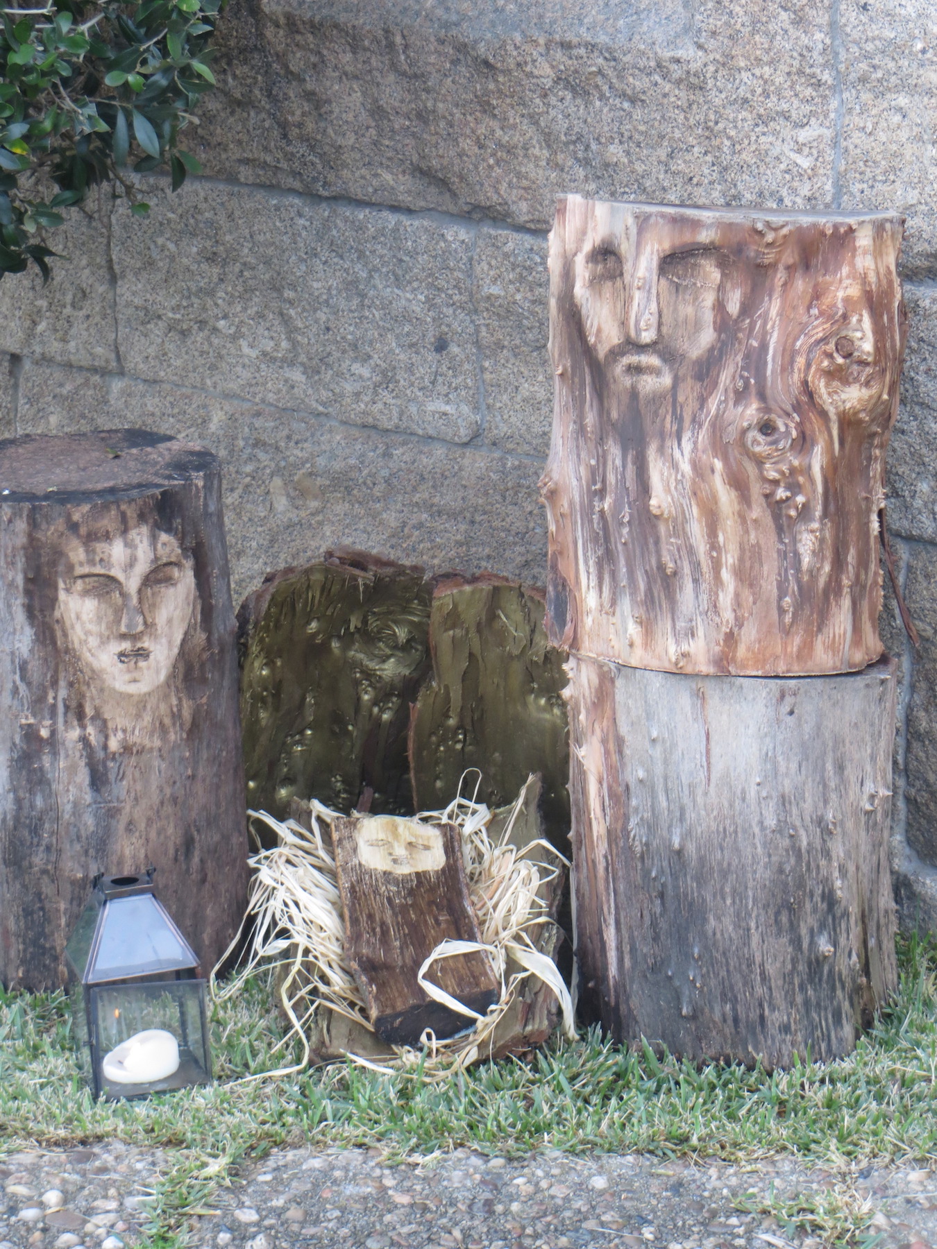 Os grupos de catequistas e acólitos apresentam um presépio no adro da igreja, construído originalmente a partir de troncos de árvores.