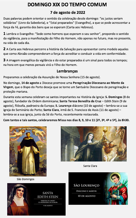 DOMINGO XIX DO TEMPO COMUM - 7 AGOSTO